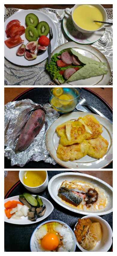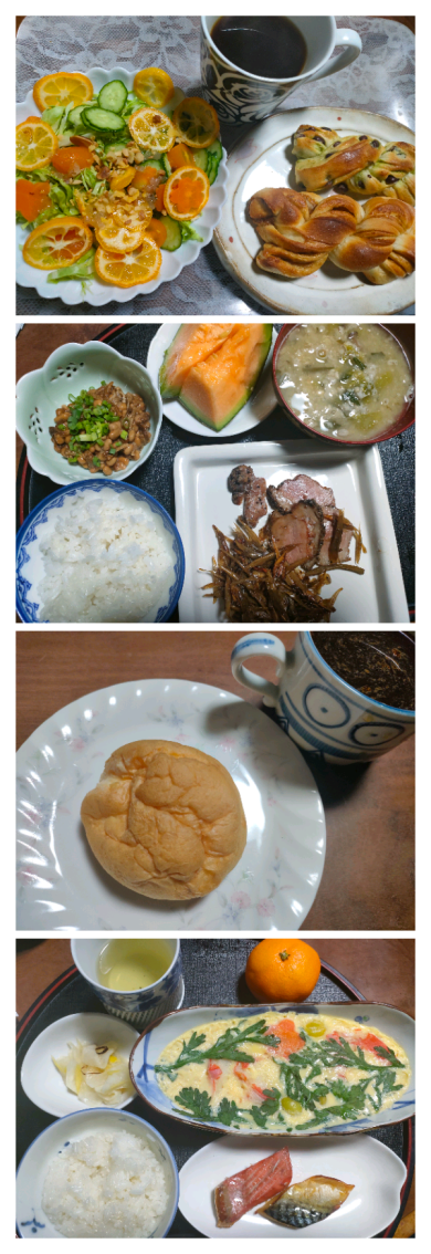 残り物のメロン、バナナ我が家で取れた柿を食べた。