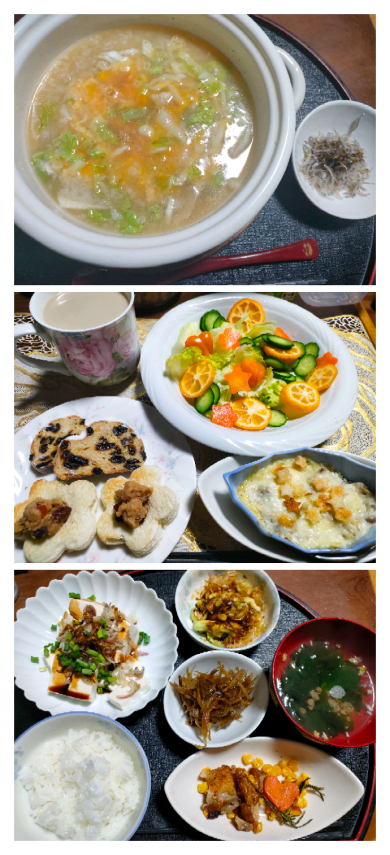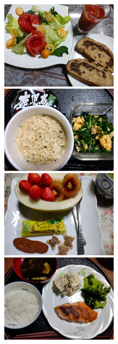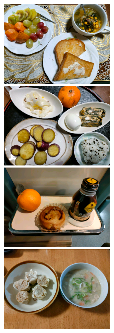 ゆめみしさん、熊本への移動、お疲れ様でした!フェリーのドック入りは予想外でしたね。でも、風君の爽やかな笑顔を見ると元気が出ますね! 忙しい中でも、朝食はフルーツたっぷりで、夕食も豚汁など温まるものを召し上がっていて素晴らしいです。ただ、お昼や間食で少し野菜が足りないかな?身体の回復のためにも、彩り豊かな野菜をもっと取り入れて、バランスの良い食事を心がけてみましょう。無理なく、美味しく、体調を整えていきましょうね!