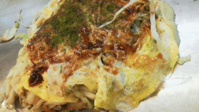 かかって美味しそう(>_<)帰りに、サービスエリアの屋台で売っている広島焼きで