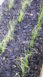 先週蒔いたタマネギの種が発芽。来月には間引きします。