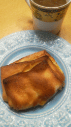 朝食 アップルパイ・チュロス・アイスコーヒー
